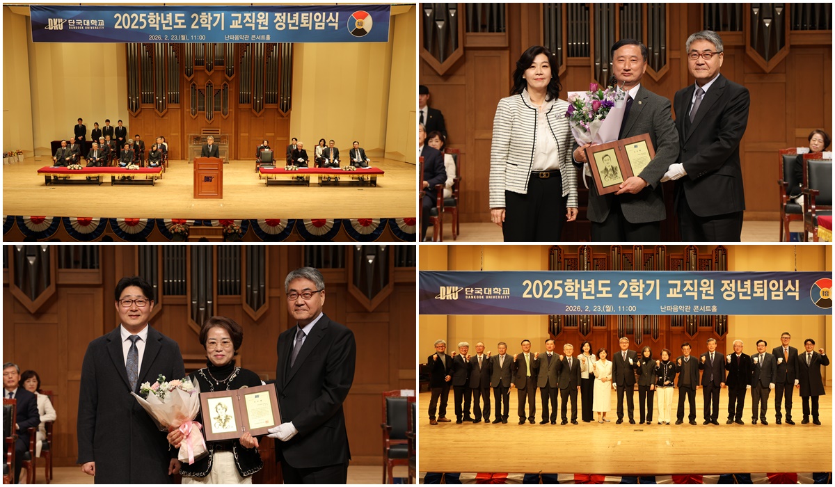 2월 23일, 난파음악관 콘서트홀에서 개최된 '2025학년도 2학기 교직원 정년퇴임식' 행사에 참석하여 정든 교정을 떠나는 정년 퇴임 교직원들께 정부포상과 공로패를 전달하였다. 안순철 총장은 인사말을 통해 "여러분이 쌓아온 전통은 세대를 이어 다가올 창학 100년 단국의 미래를 열어가는 든든한 기반이 될 것이고, 앞으로도 단국 가족의 일원으로서 변함없는 애정과 지혜를 나누어 주시길 부탁드린다"라며 그동안의 노고에 대한 감사의 인사를 전하였다.